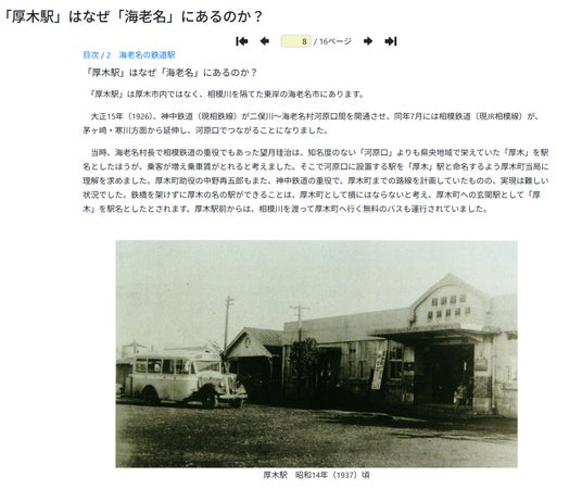 海老名市温故館で好評を博した企画展をウェブ展覧会として公開。海老名市域の近代鉄道の歴史や、近世の日記から復元した旅の記録、国史跡となっている相模国分寺跡、秋葉山古墳群の展示をピックアップしています。掲載している写真や資料は拡大してじっくり見ることができます。解説文をフルテキストでデジタル化しているので、文章の内容も検索対象に。