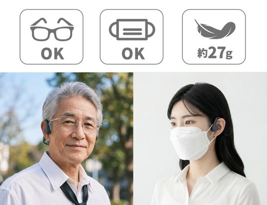 電源を入れるだけで集音機能が自動でスタートし、難しい設定やスマホ操作も一切不要な「お年寄りに優しい」設計です。耳を塞がない骨伝導方式で、圧迫感なくクリアな会話をすぐにお楽しみいただけます。