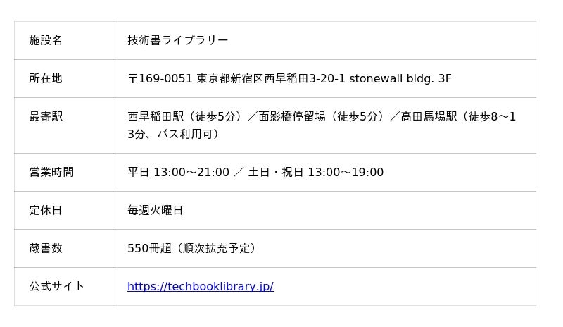 ITエンジニアのための会員制図書館が東京・西早稲田に誕生