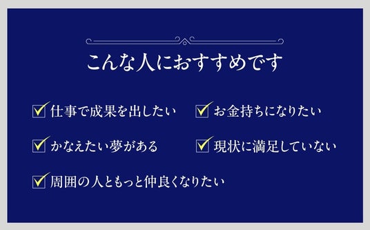 世界で600万部以上というベストセラーで、時代を超えて読み継がれ、支持を得ている本書は、誰もが豊かで充実した人生を送ることができるという著者の信念に基づき書かれました。「富と幸せ」を手にするための心の持ち方と具体的な行動指針を示しています。
