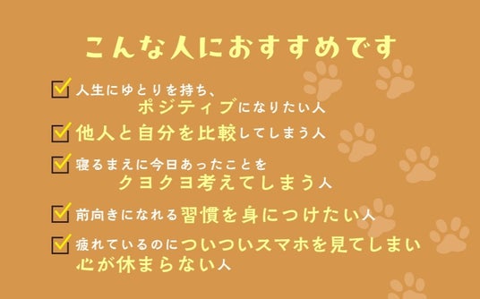 本書は全部で92項目から成り立っている。人生にゆとりをもたらすのに役立つ項目もあれば、日常生活で直面している障害を取り除くのに役立つ項目もある。どの項目にも共通するのは、人生を豊かにすることを目的として書かれているということだ。