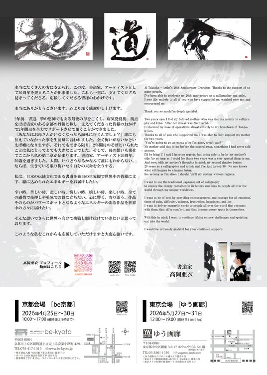 書道家/アーティスト高岡亜衣は、活動20周年を記念した