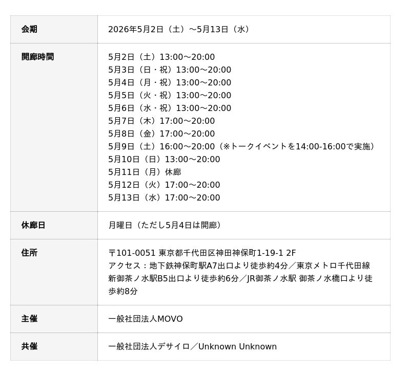 一般社団法人MOVO(代表:馬場渚)は、2026年5月に神保町にてコンテンポラリーアートを中心としたギャラリー「MOVO GALLERY」を開廊いたします。