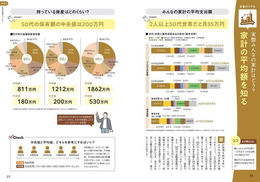 本書では、住宅ローンや介護資金など50代以降にかかるお金を概算。また、今の家計状況を書き込み式で“見える化”し、節約や増やすための具体的な方法を紹介しています。さらに、「投資はギャンブルみたいで怖い……」という人でも投資の基本をはじめ、自分の思考パターンから投資のタイプがわかるチャートやNISAの制度についてもわかりやすく解説します。