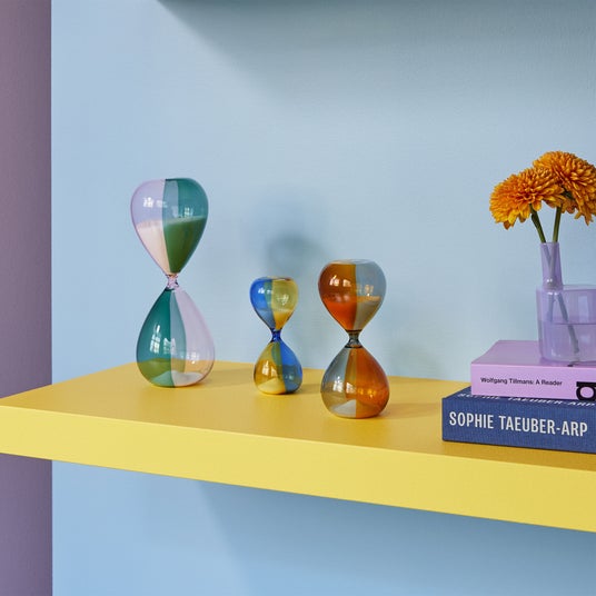 時間の流れをじっくりと味わえるハンドクラフトで作られた砂時計。職人による吹きガラスで、縦半分ずつ2色の異なるカラーを使っているため、砂時計を動かすと見る角度によって色の重なりの変化を楽しむことができます。手作りのため、すべてが1点もので、それぞれが魅力的な真のアート作品としての個性を持っています。本棚やデスクに飾っておくと、ふとした瞬間に、時が流れることは楽しいと思わせてくれるはずです。