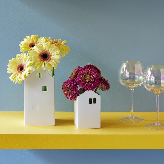 チャーミングでシンプルなハウス型の磁器製フラワーベース。部屋に置いてお気に入りの花を美しく飾るための素敵な住まいにしましょう。外側は素焼きで、内側には釉薬が施されているため、控えめでありながら印象的なコントラストがあり、くり抜きや浮き彫り加工による窓も付いています。花瓶としてだけでなく、キッチンの調理器具やデスクの文房具、小物やアクセサリーの収納として、あるいはインテリアとして窓辺に飾って楽しむこともできます。