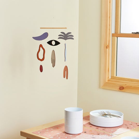 スペインの小さな工房で製造からバランス調整まで手作業で行われたモビール。リラックスするための自分だけの空間や、自宅やオフィスの片隅に安らぎをもたらしてくれます。人間の手や目といった伝統的な魔除けのモチーフなど、さまざまな有機的でカラフルな形のモチーフがあしらわれ、揺れながらバランスを取る様子を眺めるたびに新しい景色が新鮮に感じられるモビールです。