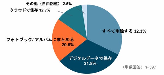 さらに、将来の遺品整理として写真をどのように考えるかを尋ねたところ(Q4)、「すべて削除する」が32.3%で最多となり、デジタル分野での断捨離という新常識が見受けられました。