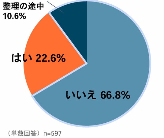 「いいえ」が66.8%、「整理の途中」が10.6%となり、合計77.4%が写真整理を完了できていない「写真整理難民」(※写真の整理や管理ができずに困っている人々)状態であることが明らかになりました。
