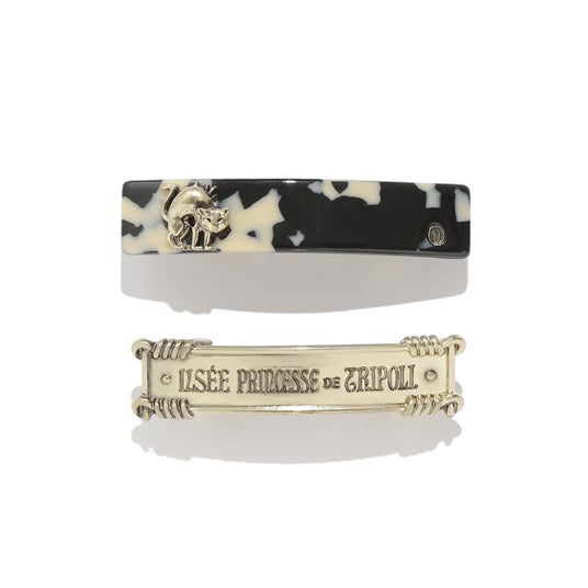 『トリポリの姫君イルゼ』の特徴的なタイトルプレートをアクセントにしたベーシックなヘアクリップ。普段使いから華やかなシーンまで幅広くお使いいただけます。