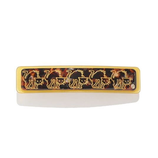 挿絵に描かれた猫を大胆にデザインしたユニークなヘアバレッタは、べっ甲を重ねたようなレトロな雰囲気。