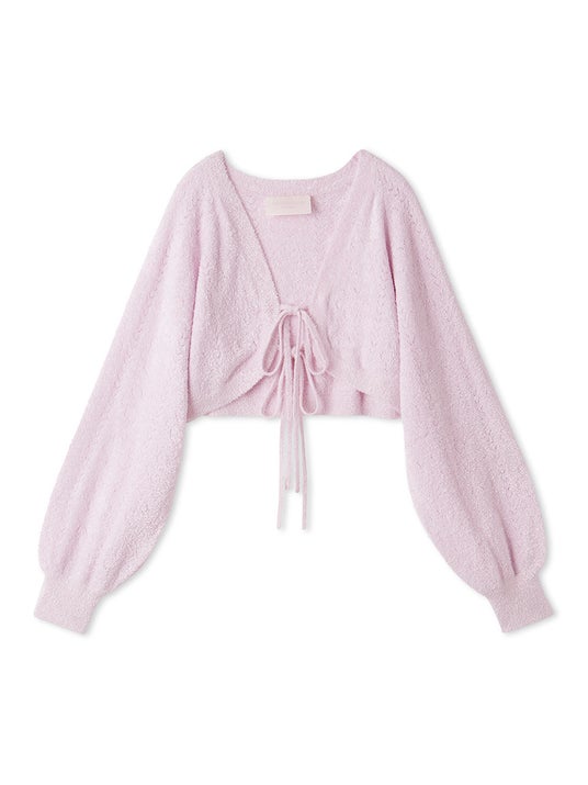 ふんわりと軽く肌触りが心地よい、さくら柄の針抜き編みニットカーディガン。ショート丈のデザインなのでワンピースやロングパンツに羽織ってバランスよく着こなせます。