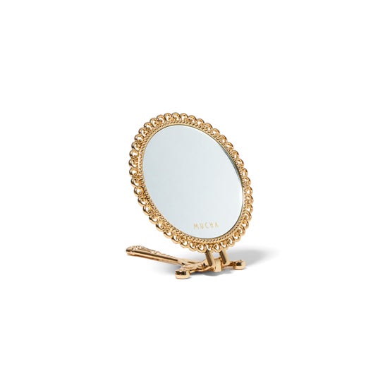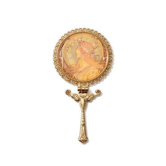 アールヌーヴォーを感じさせるシルエットに、代表作の1つである『黄道十二宮』(1896年)のアートを施したハンドミラ―。持ち手の部分は折り畳み可能で、スタンドミラーとしてもご使用いただけます。