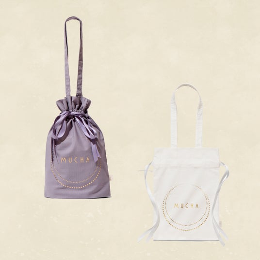 ラッピング時はハンドルを内側に畳んでギフトバッグとして、その後はトートバッグとしてもご使用いただけるラッピングトートバッグを数量限定でプレゼント。四連作『月と星』(1902年)をモチーフに、夕暮れと夜空の間を表現したラベンダーと瞬く星をイメージしたホワイトの2色よりお選びいただけます。