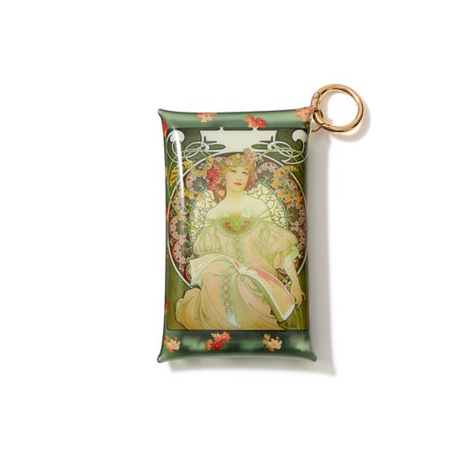 カードサイズより少し大きめのマルチケースはIDカードや名刺、リップなどの小物入れにぴったり。付属のリングをストラップやバッグに付けて、お気に入りのアートを持ち歩けます。デザインは、ミュシャの代表的アート『夢想』(1897年)と『ジョブ』(1896年)の2種類からお選びいただけます。