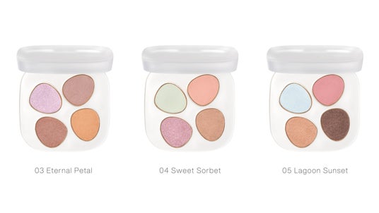 グリッター、サテン、マットの異なる質感と色を組み合わせ、目元に自然な陰影とニュアンスを生み出すパレットに、爽やかでプレイフルな新3色が登場します。花びらをイメージしたアイシャドウは何度重ねても色が濁らず、粉感を感じない薄膜仕上がり。初夏を想わせる色とエネルギーあふれる輝きをまぶたに。