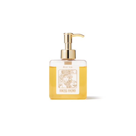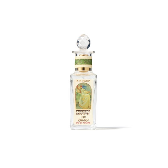 嗅覚でも視覚でもミュシャの世界観を堪能できるオードトワレ。おとぎ話の魅惑的な世界を象徴した作品『ヒヤシンス姫』のアートにインスパイアされた、無邪気な果実とヒヤシンスの色香が綴る