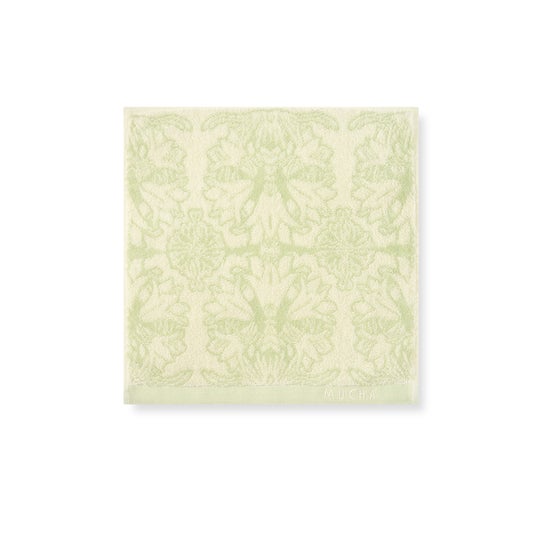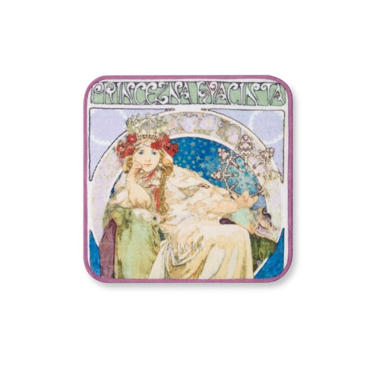 『ヒヤシンス姫』の彩り豊かなアートを大胆にプリントしたハンドタオルはコットン100%のふんわり優しい肌ざわり。繊細優美なミュシャの作品を身近に感じられ、プチギフトにもおすすめです。