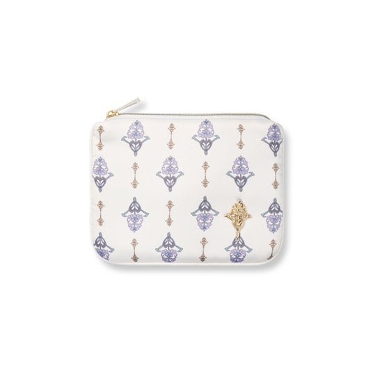 ・エレガントなオーナメントモチーフをプリントで表現した上品なサテンポーチ
