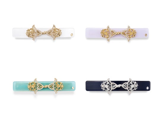 人気連作『四つの花:リリー』(1898年)のアートから花の表現を抽出し、誕生したヘアクリップは、アールヌーヴォーを彷彿とさせる、流れるようなアーチのデザインが印象的。ワニクリップ仕様で、サイドヘアアレンジやまとめ髪のアクセントとしてお楽しみいただけます。