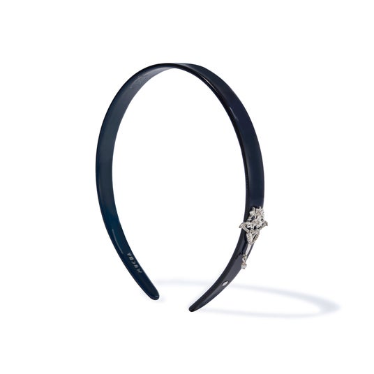 華やかなビジューブローチをあしらったエレガントなカチューシャは、シンプルながらも存在感のあるデザインでヘアスタイルを華やかに演出。内側にはミュシャのメッセージ「The aim of art is to
