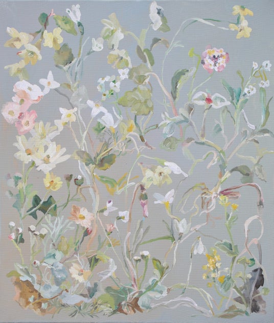 本展「On the ground」では、季節ごと、また朝と夜でも違う姿を見せる名前も知らない草花の様子に惹かれて制作したシリーズを、書店ならではの本に囲まれた特別な空間に展示します。草花の儚さと力強さを、庄島氏の鮮やかな色彩と伸びやかな筆致でご体感いただけます。この機会にぜひご覧ください。