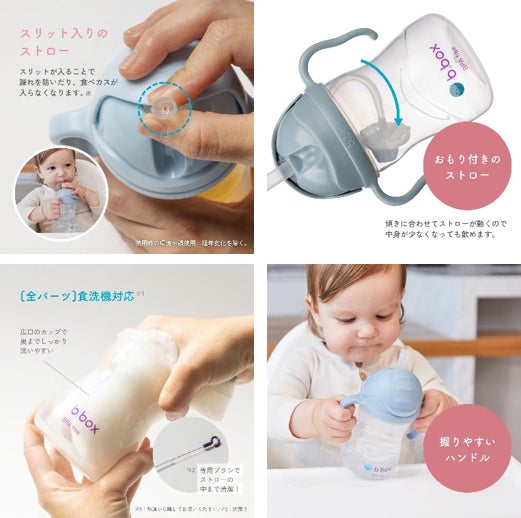 ほ乳びんからストロー飲みへの移行期はもちろん、外出時やお風呂あがりの水分補給にも大活躍。赤ちゃんの“自分でできた!”をそっと後押ししながら、ママ・パパの負担も軽減するアイテムです。