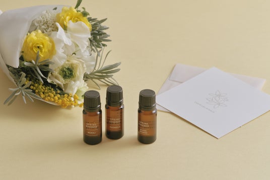 「ネロリ」「マグノリア」「ブラッドオレンジ」のエッセンシャルオイルは、不安や緊張を落ち着かせ、安定させる作用が期待できます。これらの香りを中心にブレンドされた「スプリングエッセンス」シリーズは、大切な方へ春に訪れる新しいスタートを応援する気持ちや、いたわりの心を伝えてくれます。