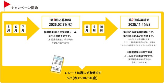 本キャンペーンは5~10月までのロングラン実施となり、第1回の当選落選に関わらず第2回にご応募いただけます。ポイントは持ち越せますので応募チャンスがたくさん♪秋冬発売予定の煮込みラーメン新メニューも対象商品となります。ぜひ多くのご応募をお待ちしております!