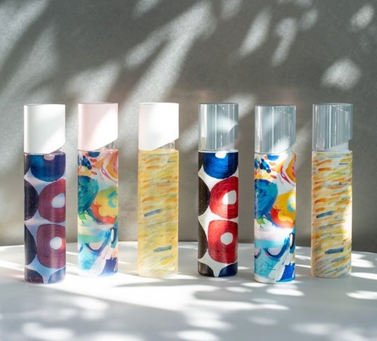 本プロジェクトでは、ヘラルボニー契約作家による日々のルーティンの中で生まれるアートを、オルビスのスキンケアローションのボトルデザインに採用。毎日の繰り返しの中にこそ潜む、静かな癒しや美しさを届けたいという想いを込めています。