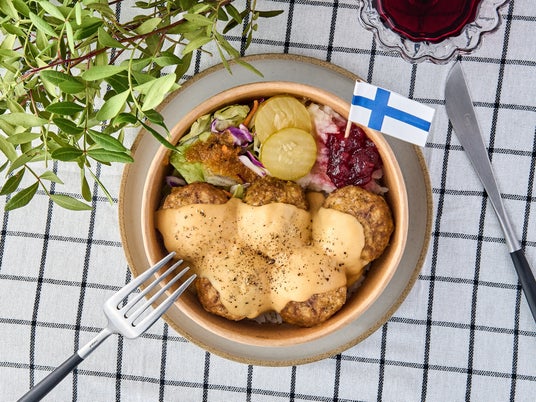 北欧フードコーディネーターのヨハンナ・ノウシアイネンさん監修、スウェーデンやフィンランドで愛されるミートボール。ジューシーなお肉に北欧定番のディジョンマスタードを使った自家製北欧ソースをかけて、マッシュポテト・甘酸っぱいリンゴンベリージャムと一緒に食べれば、本場の味をそのまま体験できます。