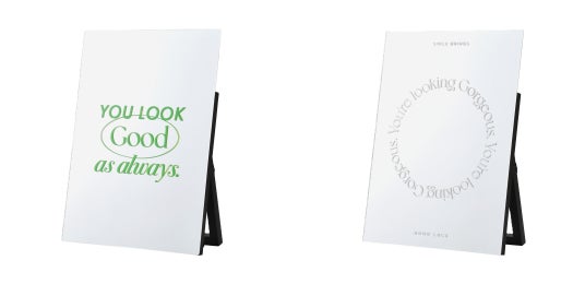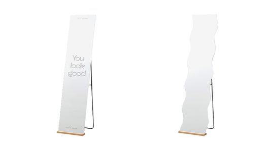 アートグラフィックやトレンドのウェーブデザインがお部屋のアクセントになるミラーです。グラフィックミラーには前向きになれるポジティブなメッセージが描かれており、お出かけ前の気分を上げてくれます。ウォールミラーはスタンド付きなので立てて置くことも可能です。