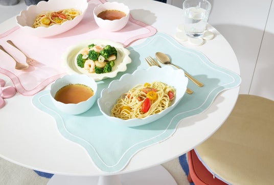 ウェーブ形状でポップなデザインのバイカラーランチマットです。