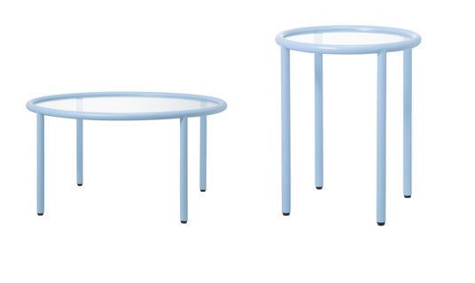 ガラス天板で軽やかな印象のテーブルです。新作はトレンドカラーのライトブルーを採用し、ポップで明るい印象に仕上げました。リビングルームのメインテーブルや、寝室のサイドテーブルにおすすめです。