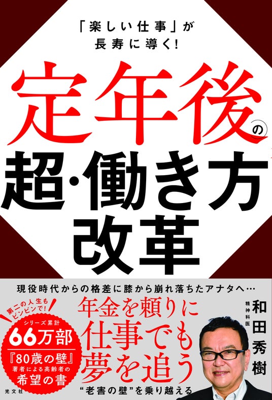 シリーズ累計66万部の『80歳の壁』などベストセラー作家として知られる精神科医・和田秀樹氏の新刊『定年後の超・働き方改革 「楽しい仕事」が長寿に導く!』が、2025年2月19日に発売します。本書は、超・長寿社会を迎えた日本において、シニア世代が健康で充実した生活を送るための働き方や生き方のヒントを提案する一冊です。