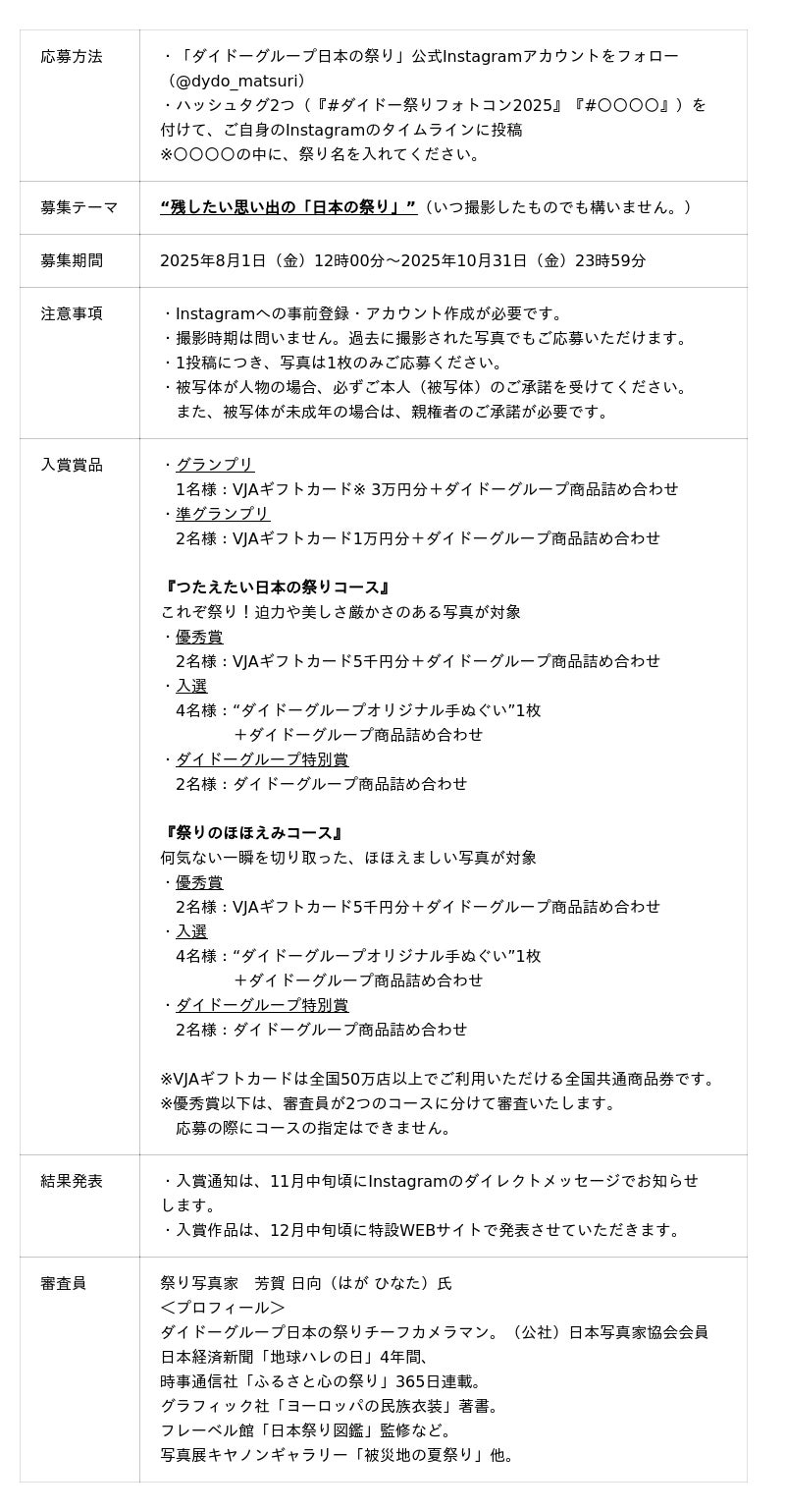 (特設WEBサイトURL https://dydo-ghd.co.jp/matsuriphoto2025/)