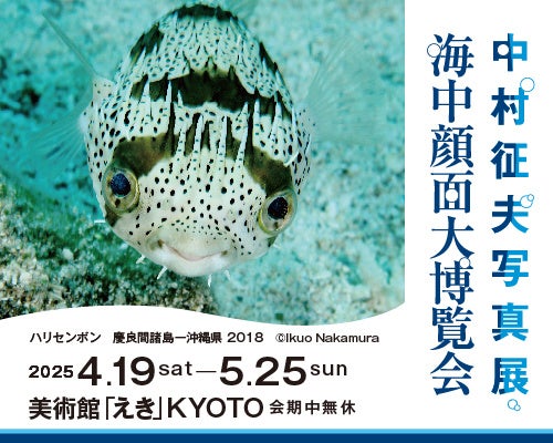 半世紀以上、海と海に生きるものたちを撮り続けている水中写真家、中村征夫(1945- 秋田県生まれ)。水面下から広がる雄大な海には、それぞれ生きものたちが暮らすユニークな楽園(社会)が存在します。色や形など、見れば見るほど色彩豊かな海の世界。うっかり見逃してしまうような海の生きものたちを、100点を超える写真作品で紹介します。2024年9月、初めて京都の海に潜った際の撮りおろし最新作も特別展示します。笑い顔や泣き顔、すまし顔など、まったく人間と変わらない個性溢れる生きものたちとの一期一会を、写真家のユーモア溢れるコメントと共にお楽しみください。 また、作家によるイベントも多数開催します。