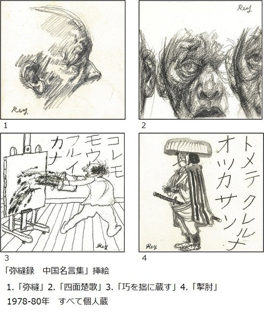 1978~70年にかけて『週刊読売』で連載された、陳舜臣のエッセイ「弥縫録 中国名言集」のために手掛けた挿絵原画の一部を紹介。