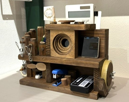 Wood Working ツリーハウスのウッドスピーカー(5月1日・20日)木のぬくもりあふれる手作りのスマホスピーカーはいかがですか?小物入れやペン立て、テープカッターもついているのでデスク周りの収納にもぴったり!