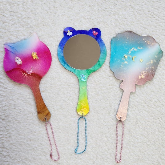 今月は手鏡を作りますよ。インクが混ざり合って、きらきらかわいい自分だけの作品を作っちゃいましょう!