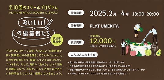 2月よりPLAT UMEKITA SCHOOL Vol.2として、「おいしい」の編集者たち ~食から未来をつくるラーニングプログラム~を開催しています。