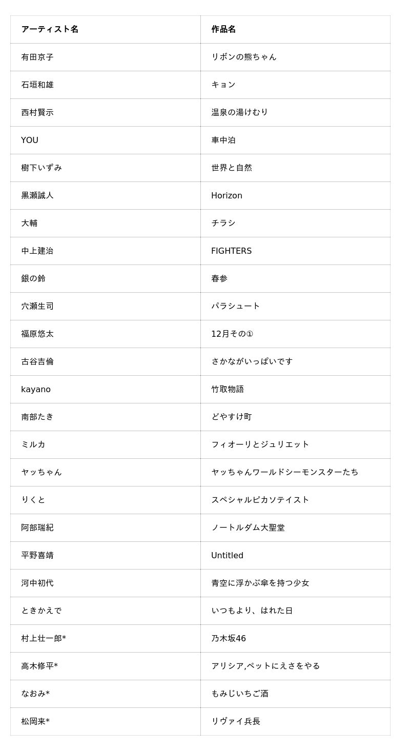 ※ *マークは、Rainbow展に初登場のアーティスト