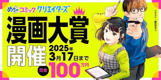 株式会社アムタス(東京都港区 代表取締役社長 児玉隆志)が提供する漫画投稿サイト「めちゃコミック クリエイターズ(めちゃクリ)」は、2025年1月16日(木)より「第4回 めちゃコミック クリエイターズ漫画大賞」を開催いたします。受賞者には賞金最大100万円を贈呈いたします。