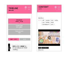 3. 当館のミッションを体現今年開館18年目を迎える当館は、ヘリングの作品と遺志を受け継ぐことをミッションとしています。新サイトでは、ミッションに基づき実践している館外での展覧会活動、社会活動、出版活動を包括的に紹介する「TIMELINE」を新たに追加しました。「TIMELINE」では、当館がこれまでに取り組んできたイベントやプロジェクトを時系列で整理し、活動全体をご覧いただけます。また「CONTENT」では公式YouTubeとの連携により、過去のイベントやコレクションを映像でお楽しみいただけます。本ウェブサイトにて、当館の歩みとヘリングの理念への理解を深め、アートを通じた社会貢献の意義を発信します。