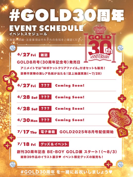 ビーボーイ編集部Xにて発信していきますので「#GOLD30周年」で検索してくださいね(ハート)