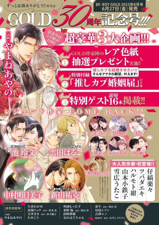 株式会社リブレ(本社:東京都新宿区、代表取締役社長:是枝由美子)が刊行するBL雑誌「ビーボーイゴールド」は創刊30周年を迎えます。