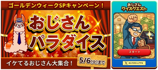 GW期間中、「おじさんパラダイス」第2弾、第3弾のお得なキャンペーンも開催予定です。