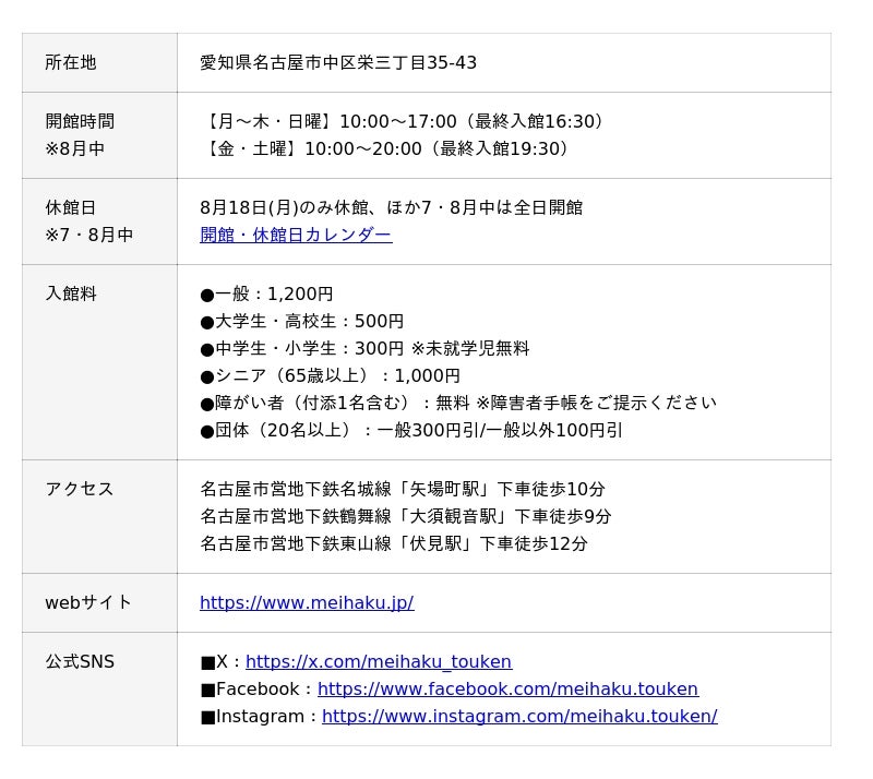 ■8月の開館時間:月~木・日曜…10時~17時(最終入館16時半)、金・土曜…10時~20時(最終入館19時半)