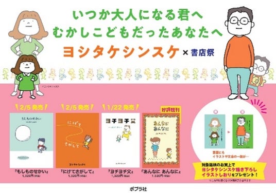 日本出版販売株式会社(代表取締役社長:奥村 景二、略称:日販)は、書店店頭の販促企画「書店祭」の一環として、人気絵本作家・ヨシタケシンスケさんとコラボレーションしたキャンペーン「いつか大人になる君へ むかしこどもだったあなたへ ヨシタケシンスケ×書店祭」を、全国の約800書店で2025年1月23日(木)より順次開催いたします。