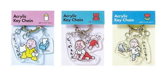 コミカルな日常の1シーンを切り取った、3連アクリルキーホルダーです。